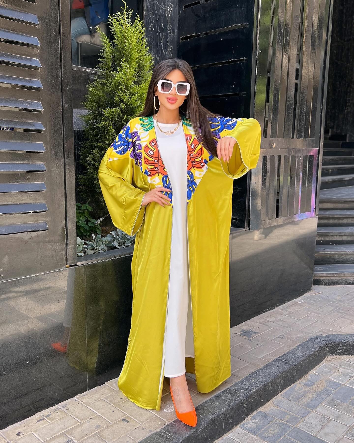 This vibrant satin Islamic kaftan with printed accents is your go-to piece for quick outings and important errands. Designed for modern modesty, it’s lightweight, stylish, and incredibly practical.
